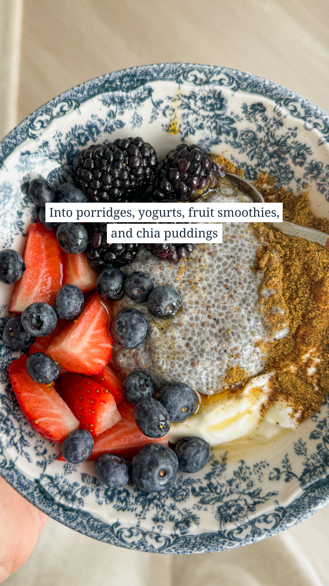 With yoghurt, porridge, fruit smoothies