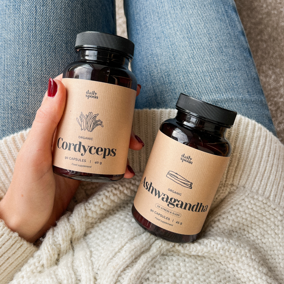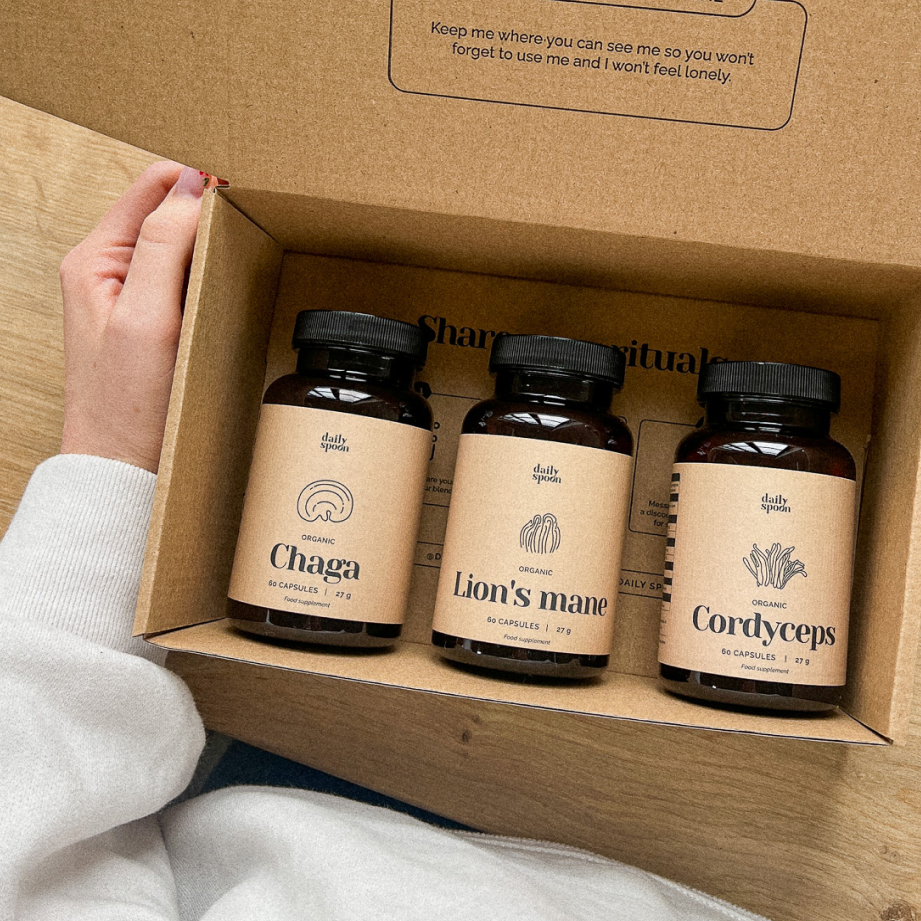 Ekologiškos funkcinių adaptogenų kapsulės patogiam ritualų naudojimui ir geresnei savijautai.