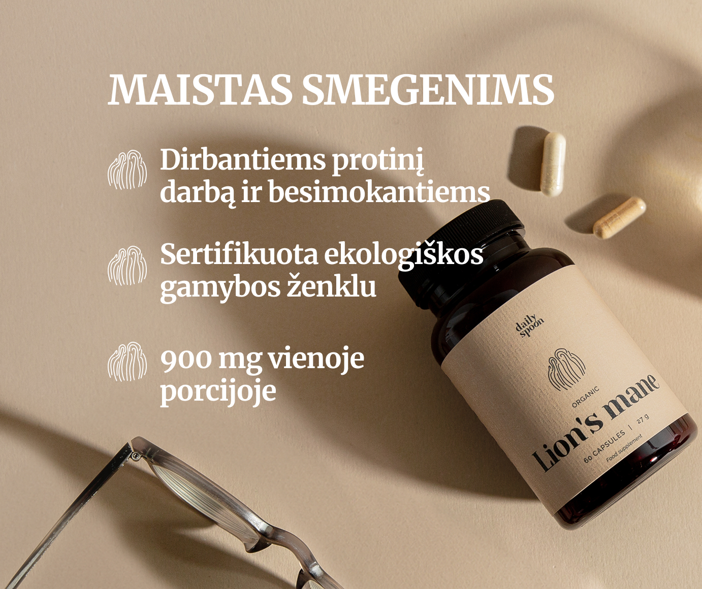 90 lion’s mane grybo kapsulių smegenims “pamaitinti”