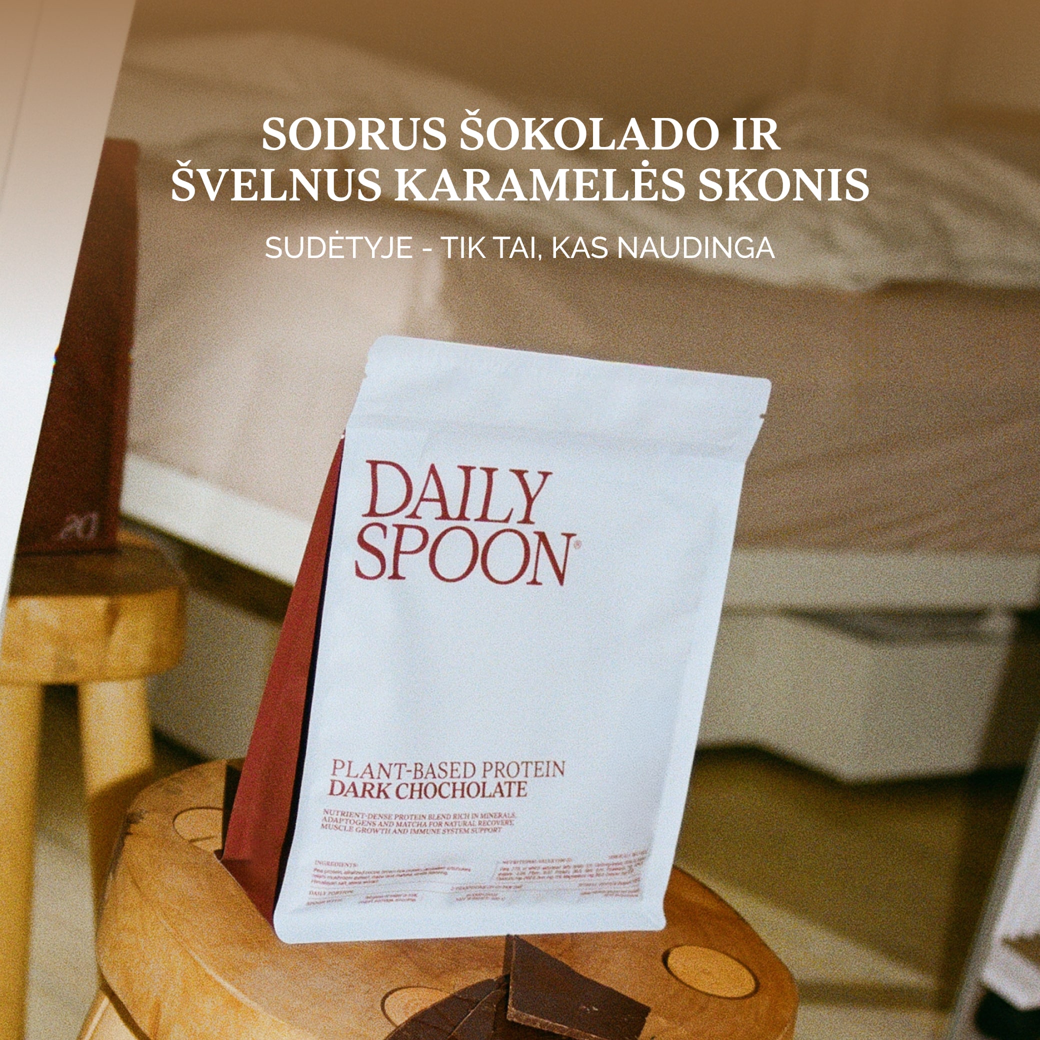 Mūsų siekis buvo sukurti baltymus, kurie atspindėtų šių laikų aktyvų žmogų. Augalinės kilmės, be laktozės, sintetinio skonio, emulsiklių, dažiklių ir kitų nereikalingų priedų, kurie erzina žarnyną ir odą.